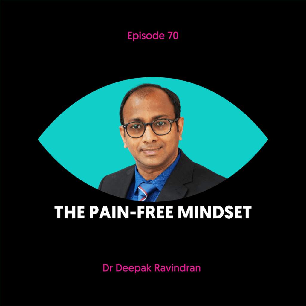 Dr Deepak Ravindran is one of the UK’s leading pain specialists. He is one of the few medical consultants who possesses triple certification in lifestyle medicine, musculoskeletal medicine and pain medicine using all of this knowledge to give his patients a truly integrative and holistic approach. He is author of the book The Pain-Free Mindset which outlines 7 steps to taking control and overcoming chronic pain – which I am excited to be discussing with him today.